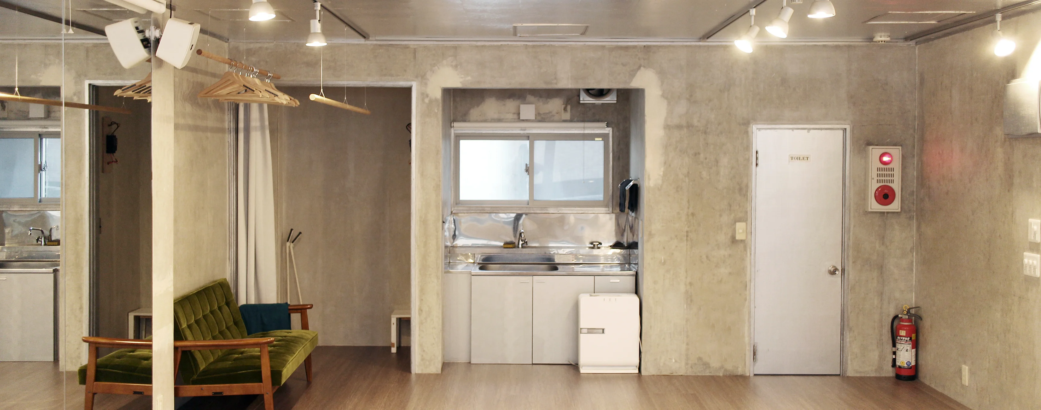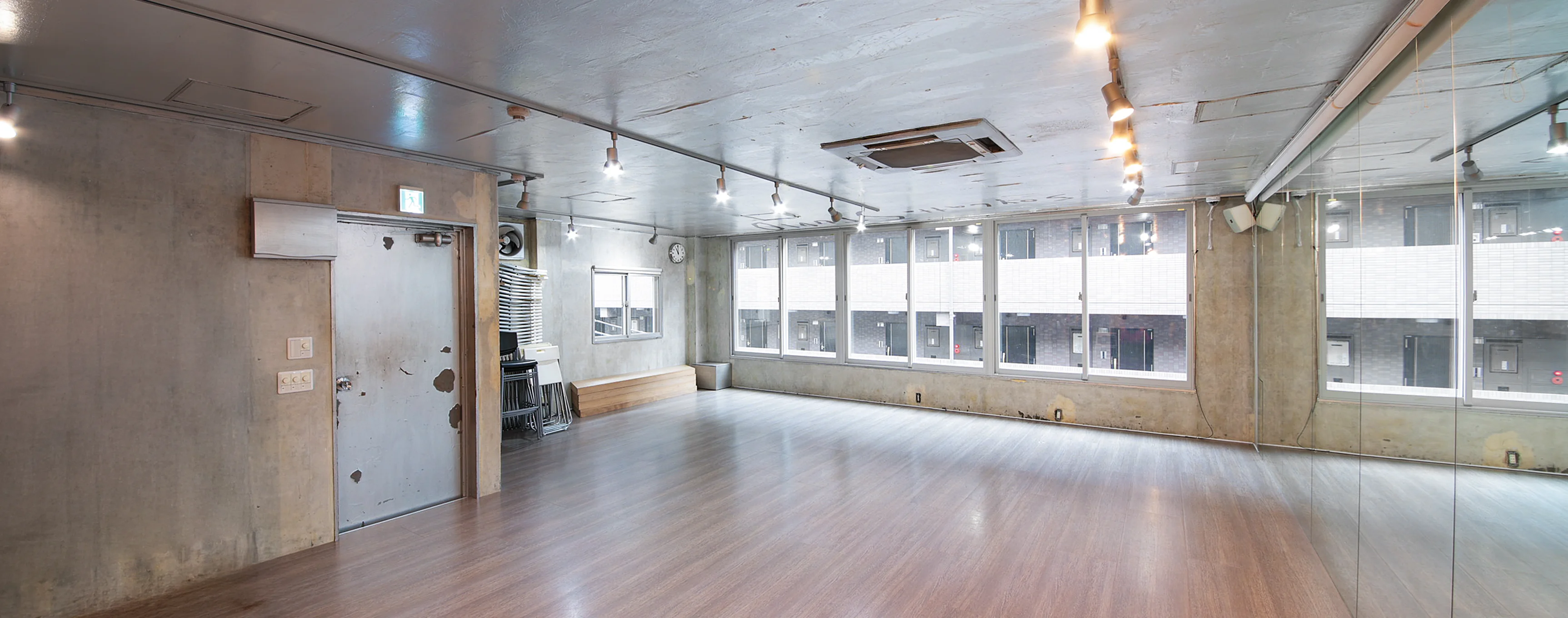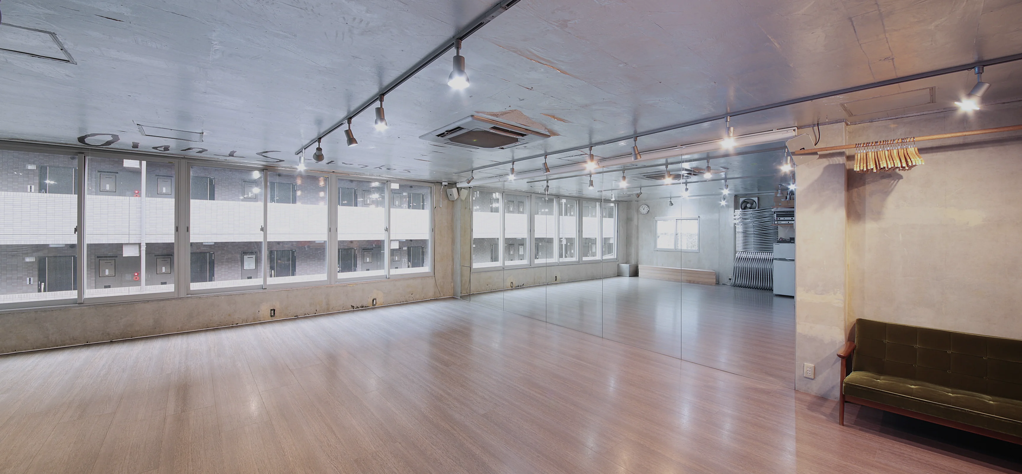 仕様フローリング / 一面鏡張り / 冷暖房設備 / 更衣室 / トイレ / 冷蔵庫 / 音響設備 / ロールスクリーン / Wi-Fi完備